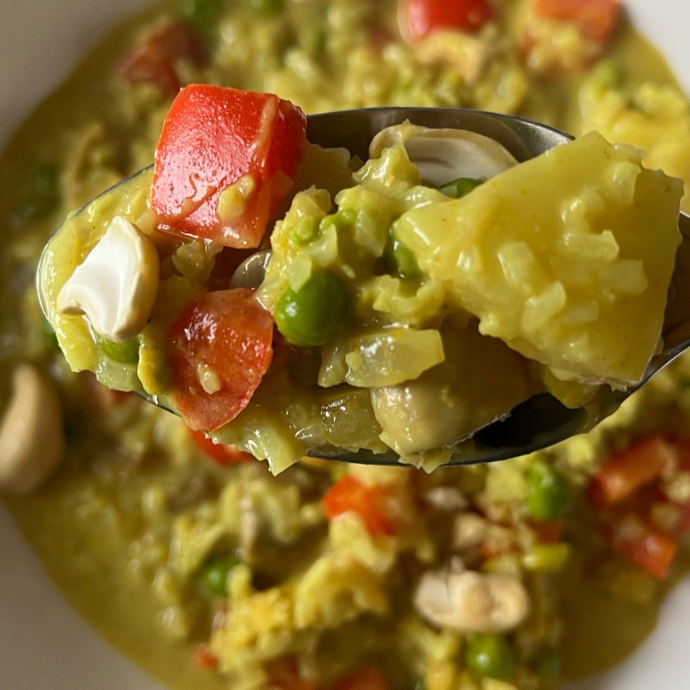 Kip korma met courgette en pastinaak (vega)