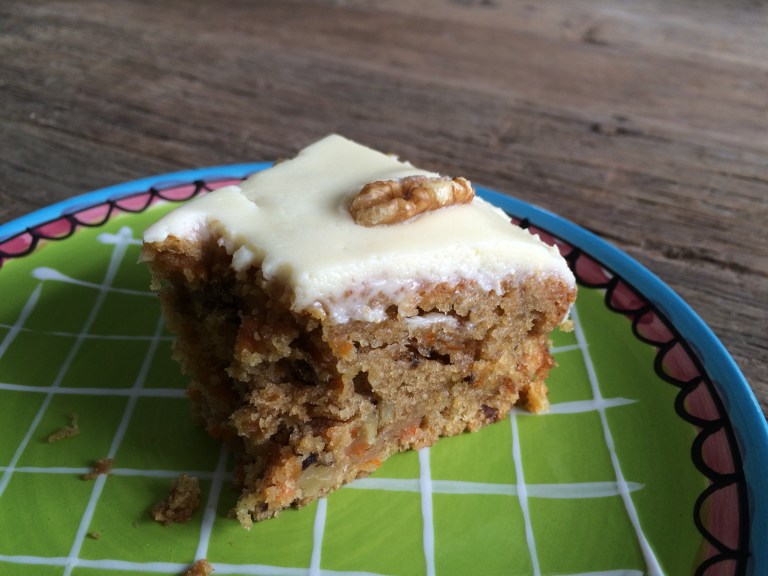 Tot vandaag had ik nog nooit in mijn leven worteltaart gemaakt! Misschien niet het meest schokkende feit in de wereld, maar toch jammer. Vooral als ik me bedenk hoe lekker de worteltaart van mijn schoonzus altijd is. Je moet het recept van Bagels & Beans hebben, vertelde ze. Dus ik ging aan de slag voor m’n verjaardag 🙂 en ik ga hem zeker nog veel vaker maken!