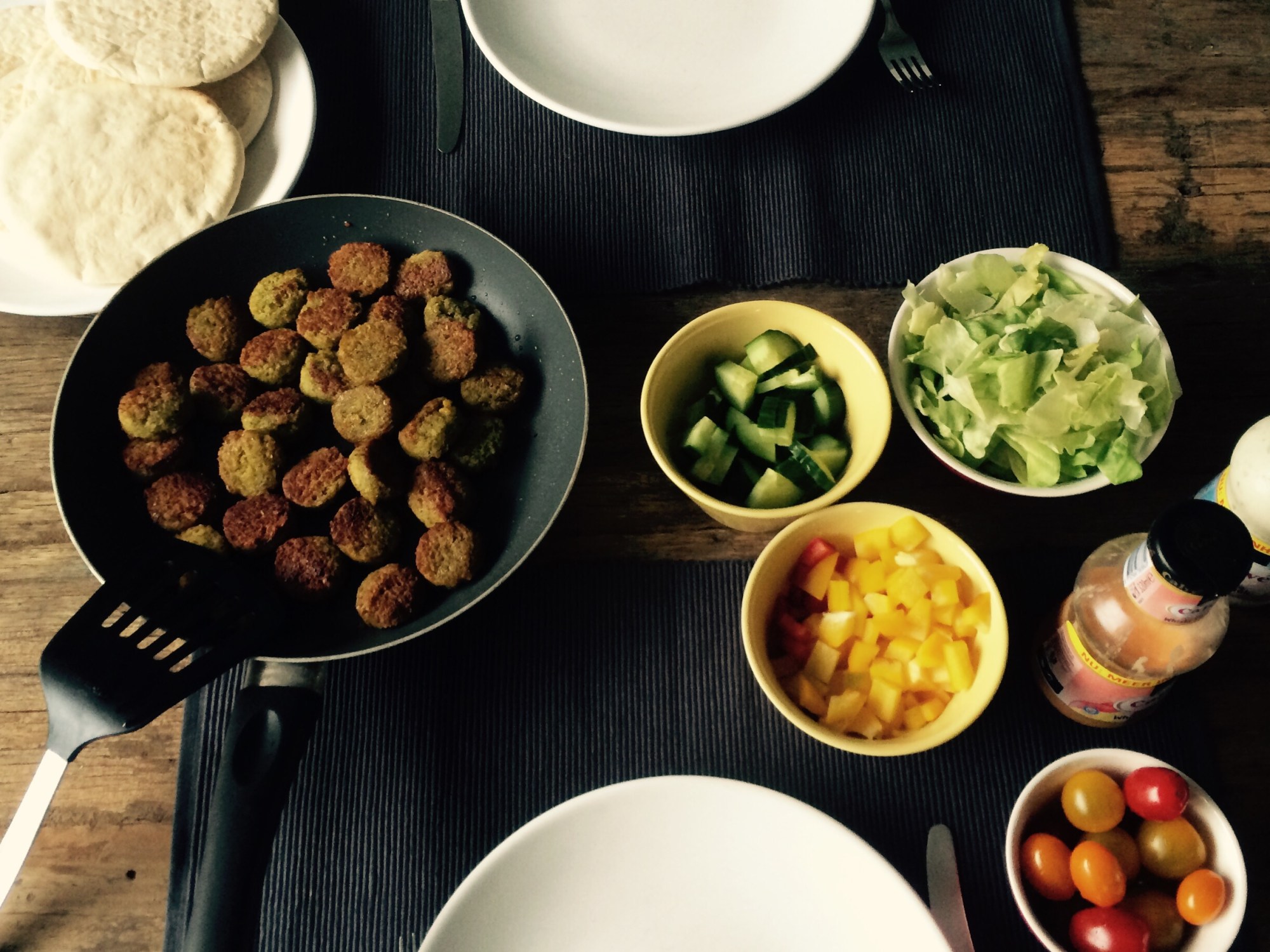 Toen ik laatst in de supermarkt langs het ‘vegetarische’ schap liep, viel mijn oog op de falafel. En in gedachten was ik weer terug op het festival š Dat moest ik maken!