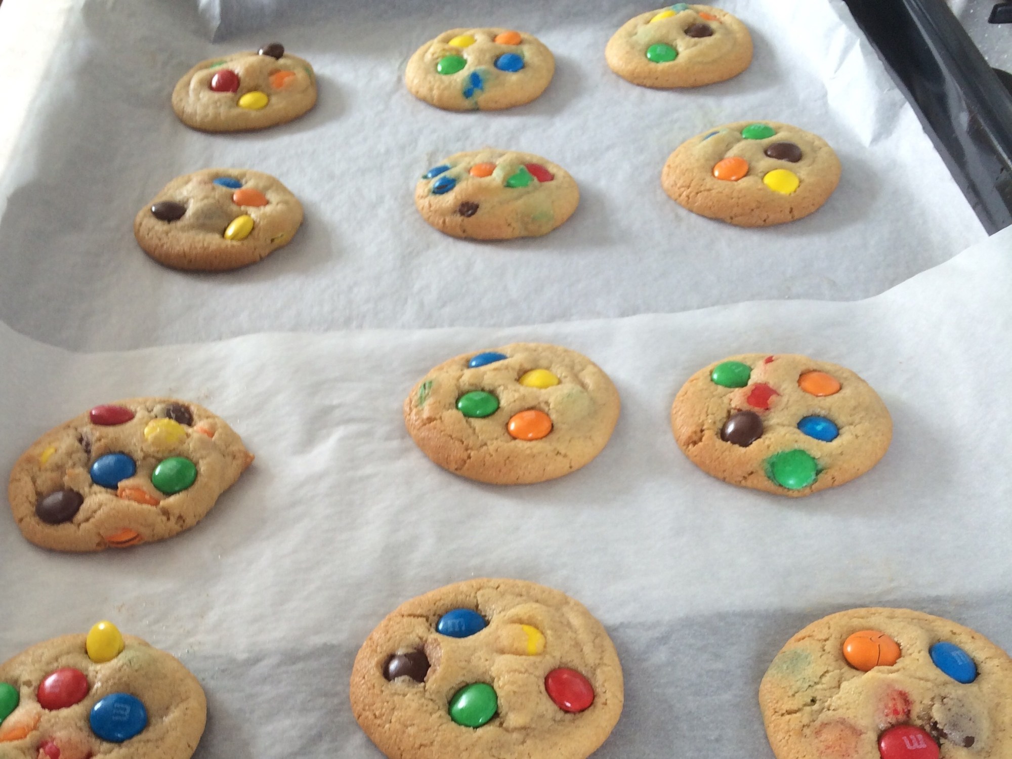 Dit weekend heb ik koekjes gebakken met m’n nichtje. Vrolijke, kleurrijke koekjes met veel M&M’s. Leuk om te zien én om te proeven!