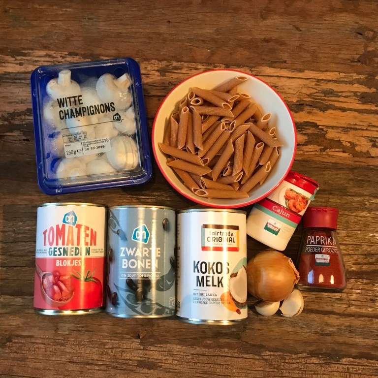 - Tijdens het koken kwam ik er achter dat de Cajunkruiden op de foto uit 70% zout bestaat. Een zakje ‘Verstegen Pure specerijenmengeling cajun’ ziet er een stuk beter uit: die bestaat alleen uit groenten, specerijen en kruiden.