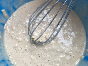 - Laat het beslag 5-10 minuten rusten, zodat er wat belletjes naar boven komen.