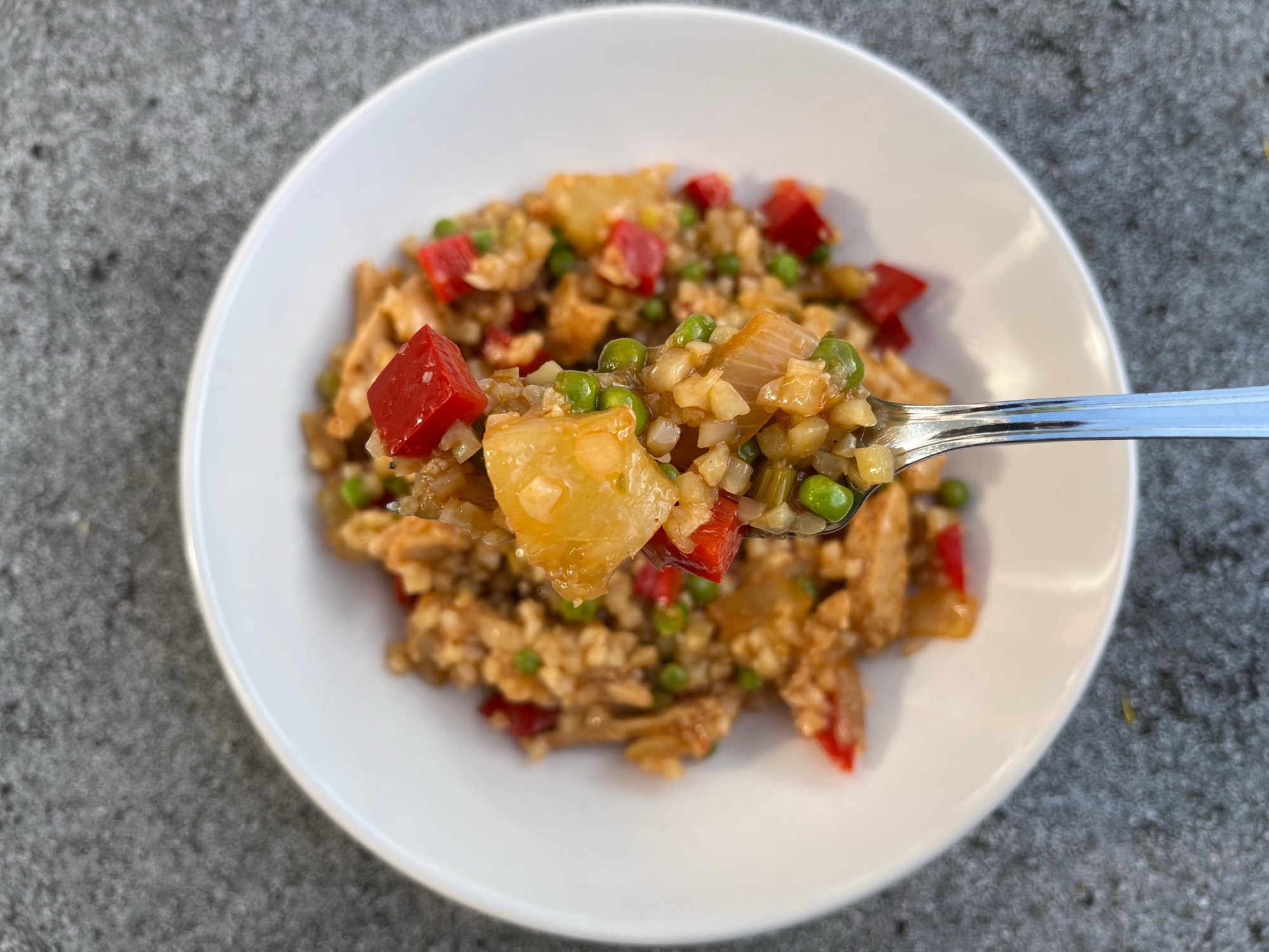 Vandaag nummer drie in mijn lijst met koolhydraatarme recepten! Voor deze ‘sweet & sour’ heb je geen potje saus nodig: het zoete van de ananassap en de zure van de azijn zijn genoeg. Het fijne aan dit gerecht is dat je bijna alles uit de voorraadkast en vriezer kan halen ❄️ En dat het snel klaar is natuurlijk! Okee, en ook dat het boordevol groenten zit 😉 Zo krijgen de kids ook extra groenten binnen. Al eten ze alleen de rijst, dat is stiekem ook groente!